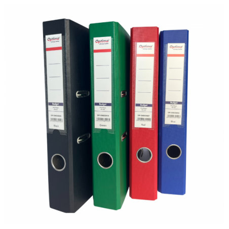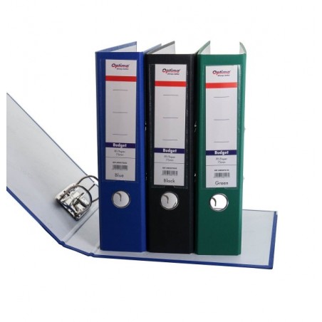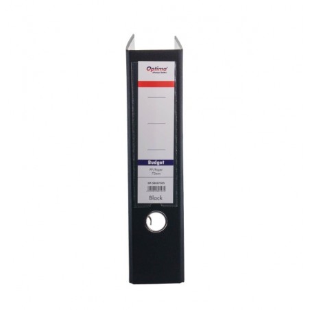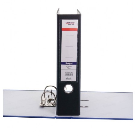 Biblioraft A4, plastifiat PVC/paper, margine metalica, 75 mm, Optima Budget - negru