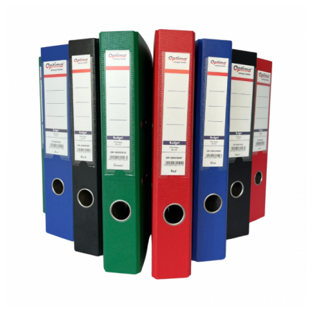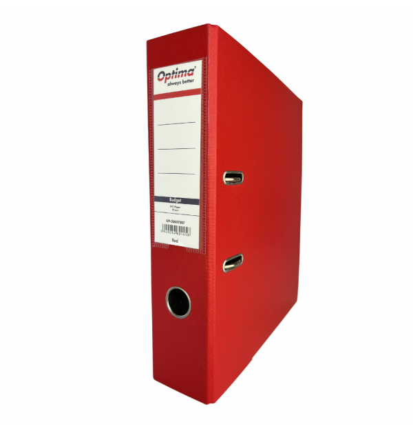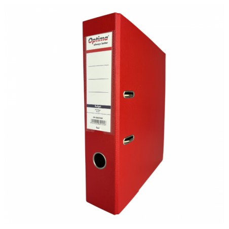 Biblioraft A4, plastifiat PVC/paper, margine metalica, 75 mm, Optima Budget - rosu