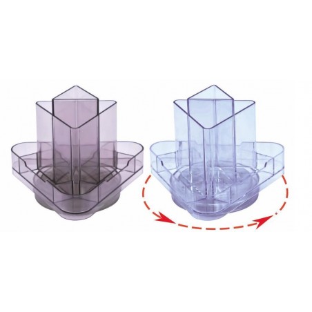 Suport plastic pentru accesorii de birou, rotativ, 10 compartimente, KEJEA - fumuriu