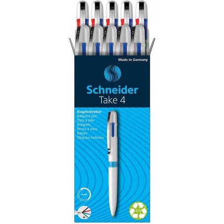 Pix SCHNEIDER Take 4, corp alb/bleu, clema metalica - 4 culori