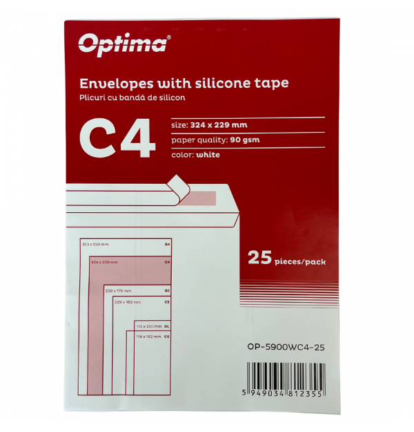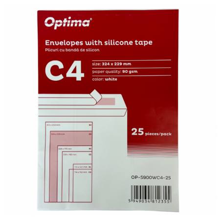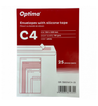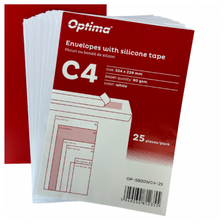 Plic C4 (324x229mm), lipire siliconica, 25 buc/set, Optima - alb