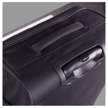 • Curelele de compresie din interiorul compartimentului principal mentin totul in siguranta si la locul sau, in timp ce manerul telescopic si manerele de transport de pe partea superioara si laterala ofera optiuni convenabile de transport.