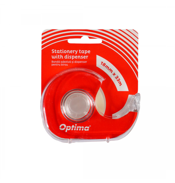 • Dispenserul cu banda adeziva transparenta Optima este un produs practic si usor de utilizat, ideal pentru uz casnic, birou sau aplicatii comerciale.