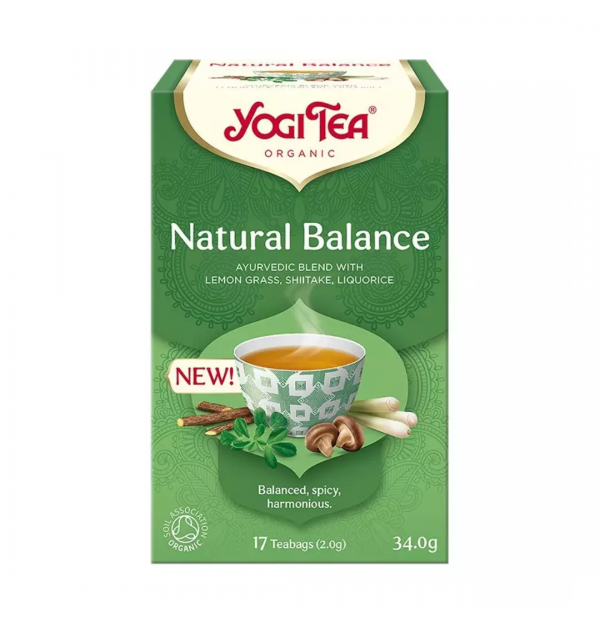 • YOGI TEA – CEAI BIO NATURAL BALANCE, 34,0G Ingrediente: lemon grass* (40%), lemn dulce* (14%), shiitake* (10%), schinduf* (10%), flori de soc*, flori de tei*, busuioc*, moringa*, bautura uscata de kombucha*.