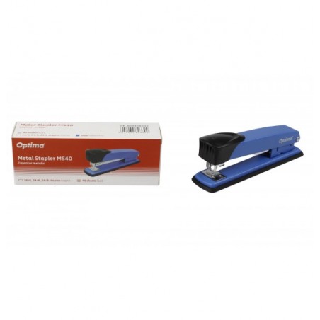 Capsator metalic, 40 coli, 160x58x40mm, capse 24/6, 26/6, 24/8, Optima MS40 - albastru