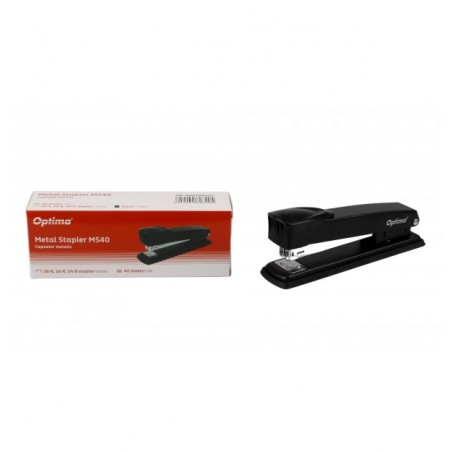 Capsator metalic, 40 coli, 160x58x40mm, capse 24/6, 26/6, 24/8, Optima MS40 - negru