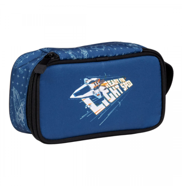 • Inchiderea cu fermoar si designul vibrant inspirat din NINJAGO il fac ideal pentru scoala sau activitati creative.
