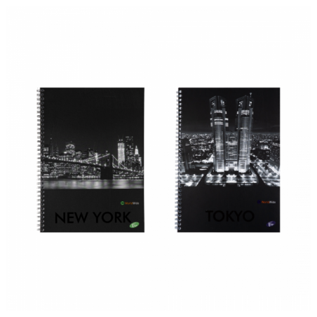 Caiet cu spirala, A4, 70 file, 70gr./mp, coperta carton 300gsm, design cities by night - matematica