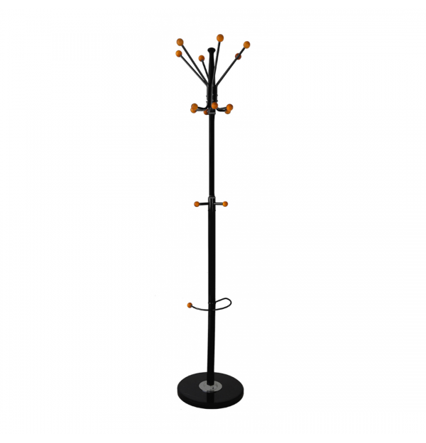 Design clasic Fabricat din otel rezistent, vopsit in camp electrostatic Baza din marmura, care ofera stabilitate Prevazut cu 14 carlige pentru agatarea hainelor Suport integrat pentru umbrela Ideal pentru interiorul casei, sala de asteptare sau birou Dimensiuni: 38x180 cm Culoare: negru