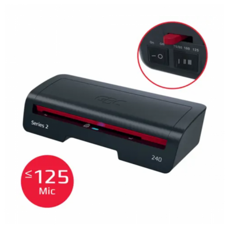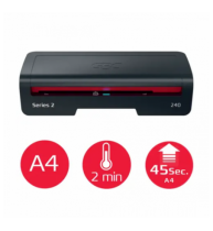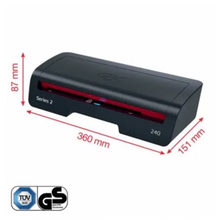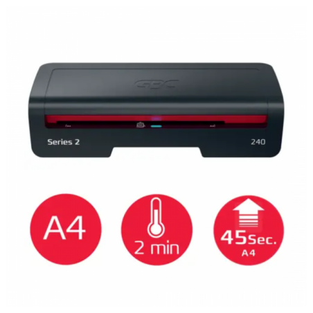 GBC 240 este o solutie eleganta si eficienta pentru nevoile de laminare zilnice. Construit pentru a combina stilul si performanta, acest laminator A4 este ideal pentru uzul acasa sau in birouri de acasa. Timp rapid de incalzire – gata de utilizare in doar 2 minute. Compatibil cu folii de la 75 la 125 microni. Lamineaza documente de la carduri de identitate pana la dimensiunea A4. Lamineaza un document A4 (75 microni) in doar 45 de secunde. Lamineaza 13 documente A4 in 10 minute. LED inteligent de stare – se aprinde rosu in timpul incalzirii si devine albastru, insotit de un semnal sonor, cand laminatorul este gata de utilizare. Maneta de eliberare a blocajului permite indepartarea manuala usoara a foliilor alimentate gresit sau blocate. Include un pachet de start cu 5 folii A4 (75 microni). Economiseste energie cu functia de oprire automata dupa 15 minute de inactivitate. Nivel scazut de zgomot <50 dBa pentru mai putina distragere. Pentru cele mai bune rezultate, foloseste folii GBC pentru documente. Certificat CE, TUV/GS.