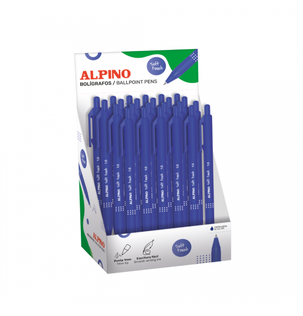 • Prezinta elegant si practic pixurile Alpino Soft Touch cu ajutorul acestui display din carton, special conceput pentru expunerea in magazine, librarii sau spatii educationale.