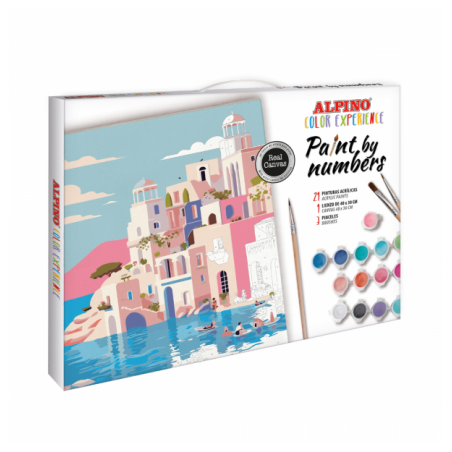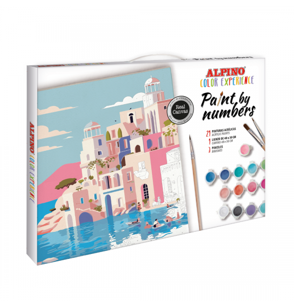 • Contine: 1 panza canvas numerotata de 40x30 cm, 21 de vopsele acrilice numerotate de 3 ml fiecare, 3 pensule (fina, medie si groasa), o imagine de referinta colorata si un sablon numerotat pentru ghidaj precis.