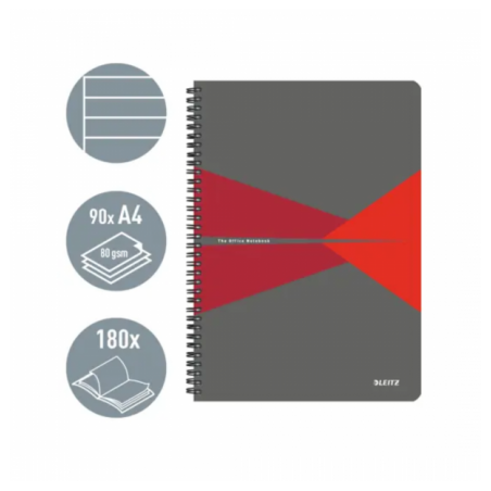 Caiet de birou LEITZ Office, carton laminat, certificare FSC, reciclabil, A4, 90 coli, cu spira, dic