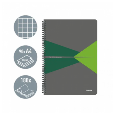 """Coperta usoara si rezistenta din carton laminat Legarea cu spira permite deschiderea la 360 de grade a caietului, iar pliat la jumatate poate fi folosit usor pentru a lua notite in timp ce esti in miscare. Hartie de cea mai buna calitate, opaca si cu suprafata fina, pentru o scriere lina, fara pete. Antet titlu si data, pentru o mai buna organizare a notitelor. Microperforatii pentru o rupere mai usoara. Specificatii: 180 de pagini / 90 de coli de hartie A4 certificata FSC® de 80 g/mp Culoare: Verde Dimensiuni: 225 x 12 x 297 mm Format: A4 Numar de coli: 90 Tip material pentru coli: Hartie 80 gsm, certificata FSC®"