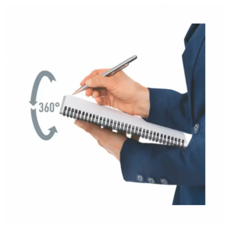 • Legarea cu spira permite deschiderea la 360 de grade a caietului, iar pliat la jumatate poate fi folosit usor pentru a lua notite in timp ce esti in miscare