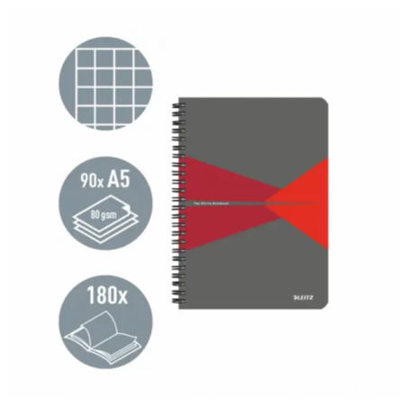 Coperta rezistenta din polipropilena ofera un suport de scris ideal pentru momentele cand va aflati in miscare Usor de rasfoit datorita spirei cu deschidere la 360° Hartie de calitate superioara, opaca si cu suprafata fina – pentru o scriere lina, fara pete Antet pentru titlu si data, util pentru organizarea notitelor Microperforatii care permit desprinderea usoara a colilor 180 de pagini / 90 de coli de hartie A5 certificata FSC®, 80 gsm Culoare: Rosu Dimensiuni: 164 x 13 x 210 mm Format: A5 Numar de coli: 90 Descriere: pagini matematica Coperta din: PP (polipropilena)