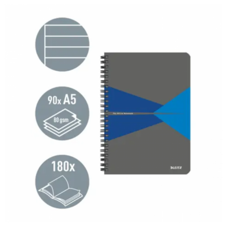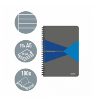 Coperta rezistenta din polipropilena ofera un suport de scris ideal pentru momentele cand va aflati in miscare Usor de rasfoit datorita spirei cu deschidere la 360° Hartie de calitate superioara, opaca si cu suprafata fina – pentru o scriere lina, fara pete Antet pentru titlu si data, util pentru organizarea notitelor Microperforatii care permit desprinderea usoara a colilor 180 de pagini / 90 de coli de hartie A5 certificata FSC®, 80 gsm Culoare: Albastru Dimensiuni: 164 x 13 x 210 mm Format: A5 Numar de coli: 90 Descriere: pagini dictando Coperta din: PP (polipropilena)