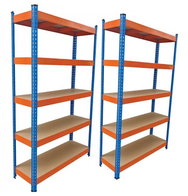 Raft dublu PROFESIONAL Premium 2000x2400x600 mm (HxLxl) lacuit albastru/portocaliu 5 polite MDF, 5000 kg, 7 ani garantie, PLUS