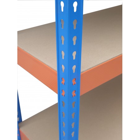 • raftul este realizat din tabla de otel calitatea I lacuit albastru/portocaliu, iar cele 5 polite din MDF