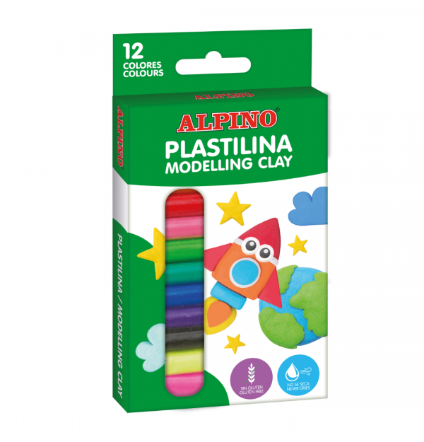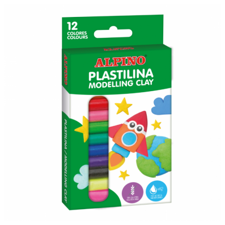 • Plastilina standard Alpino, set cu 12 culori asortate, 12 x 17 g/blister.