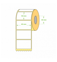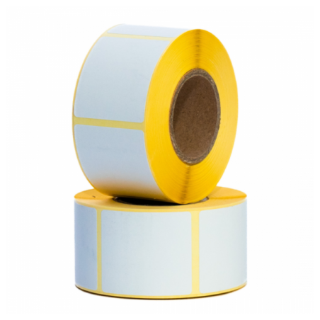 • Role de etichete autocolante pretaiate din hartie termica, pentru imprimante cu printare prin transfer termic direct (DT).