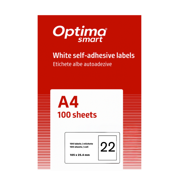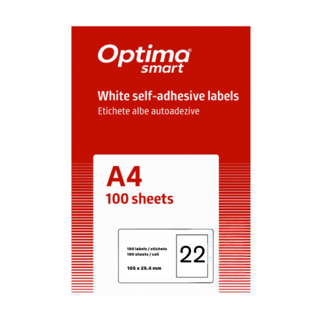 Etichete albe autoadezive 22/A4, 105 x 25.4 mm, 100 coli/top, Optima Smart